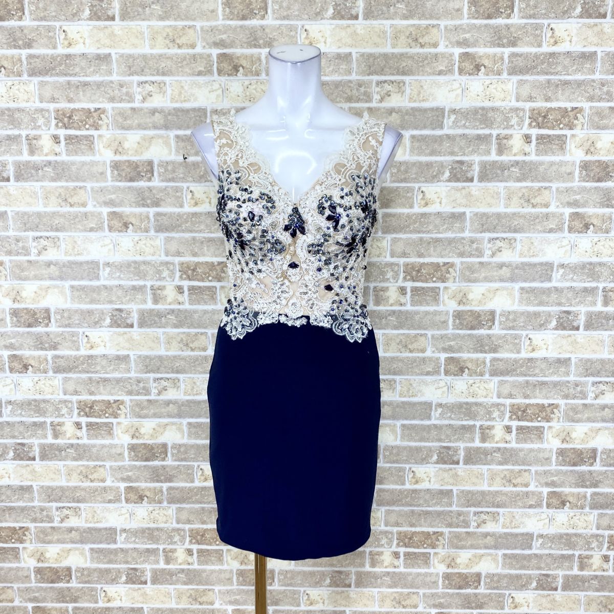 > 1円 ドレス Angel R ミニドレス S ベージュネイビー カラードレス キャバドレ 発表会 イベント 中古12547