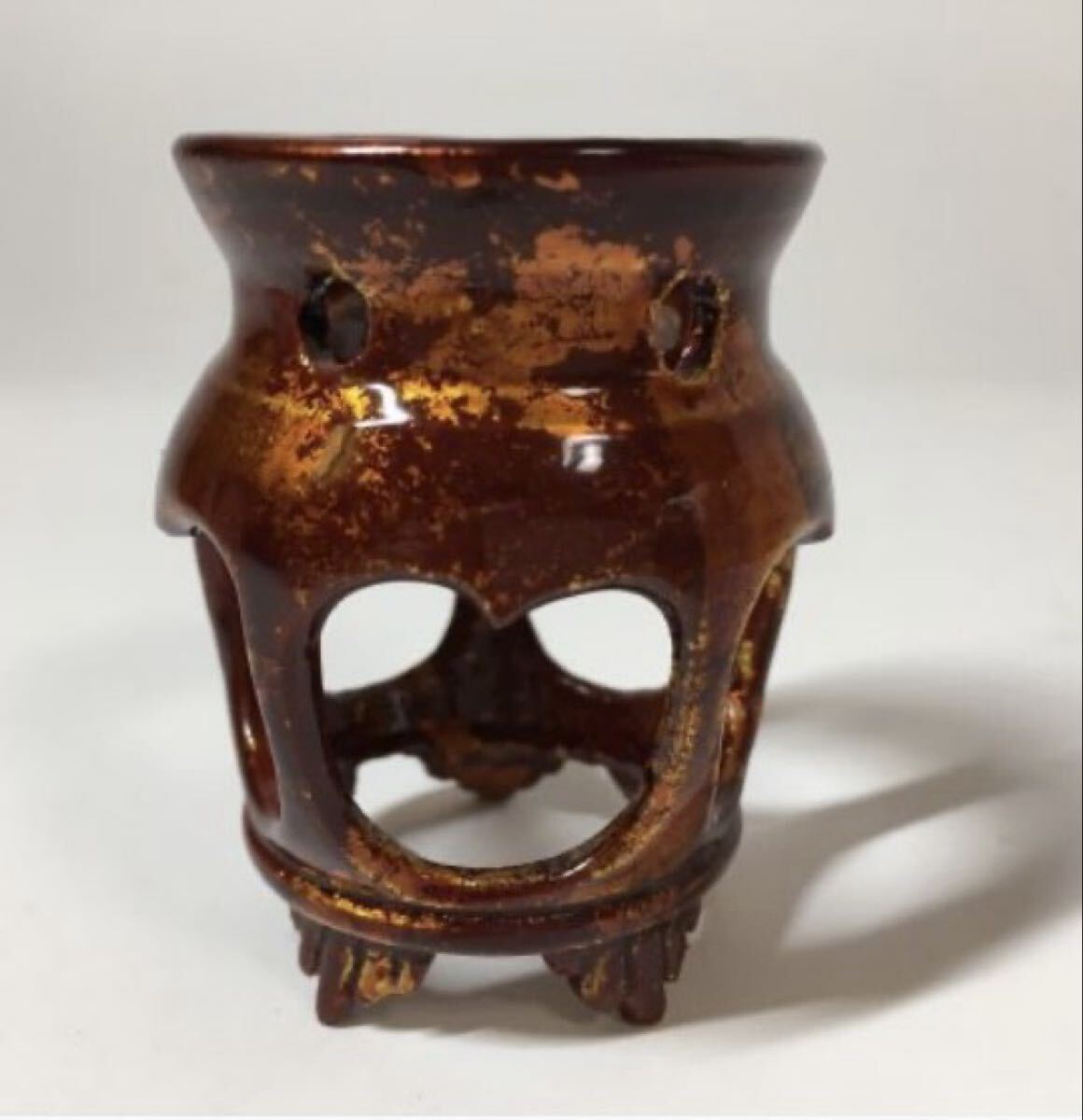 - 前畑 春斎 陶漆 白檀塗 夜学 蓋置 桐箱 共箱 共布 栞つき