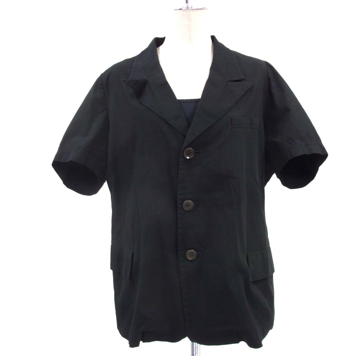 > 90S◆YohjiYamamoto FEMME ヨウジヤマモトファム コットンビークドラペル 半袖 ギャザージャケット 日本製 レディース