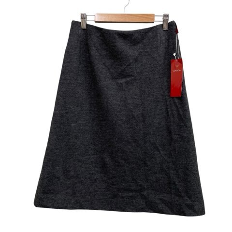 > アマカ AMACA タグ付き 膝丈スカート ウール混 タック 伸縮性 グレー ブラック系 サイズ44 3L相当 レディース