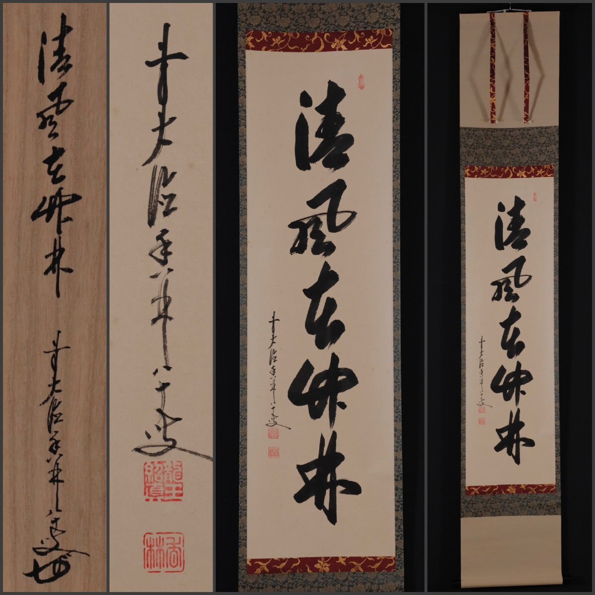 > 【模写】吉】12684 大橋香林 書「清風在竹林」 共箱 臨済宗大徳寺派 塔頭興臨院 岐阜県の人 仏教 茶掛け 茶道具 禅語 掛軸 掛け軸 骨董品