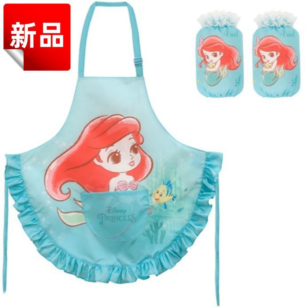 - ★新品★プリンセス アリエル エプロン 子供用 フリル付き アームカバー セット キッズ 女の子 料理 お手伝い かわいい キャラクター