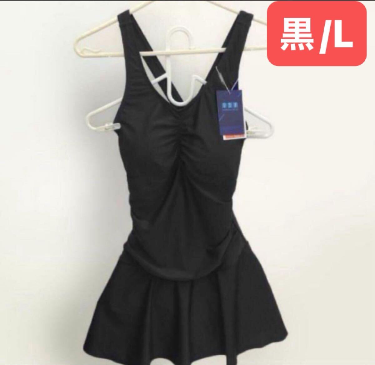> 【ワンピース水着★ブラック/Lサイズ】レディース水着 体形カバー かわいい スイムウェア ママ水着 プール 海 キャンプ 送料無料 新品