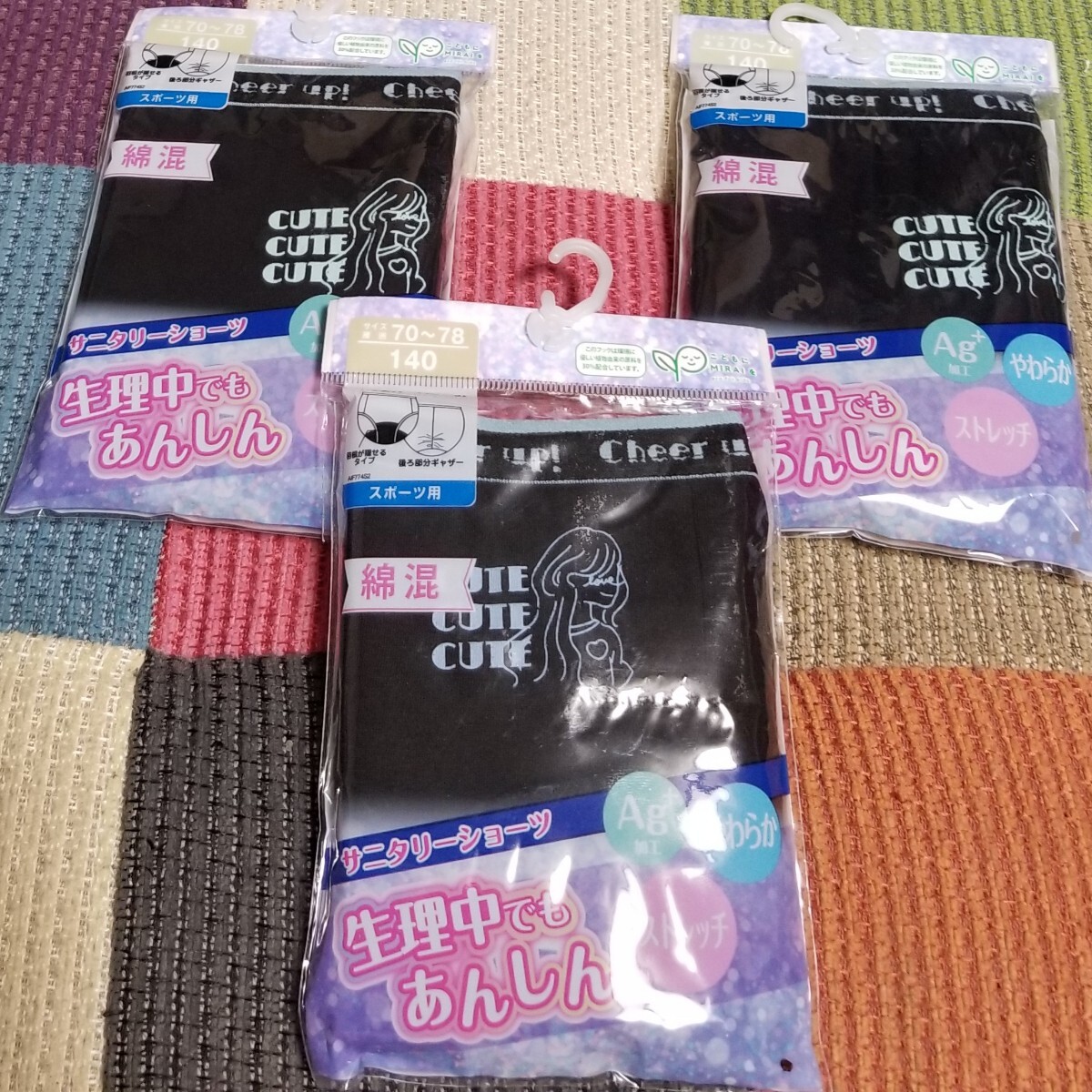 > 140cm サニタリーショーツ 3枚セット 生理用 スポーツ用 綿混 新品 サニタリー パンツ