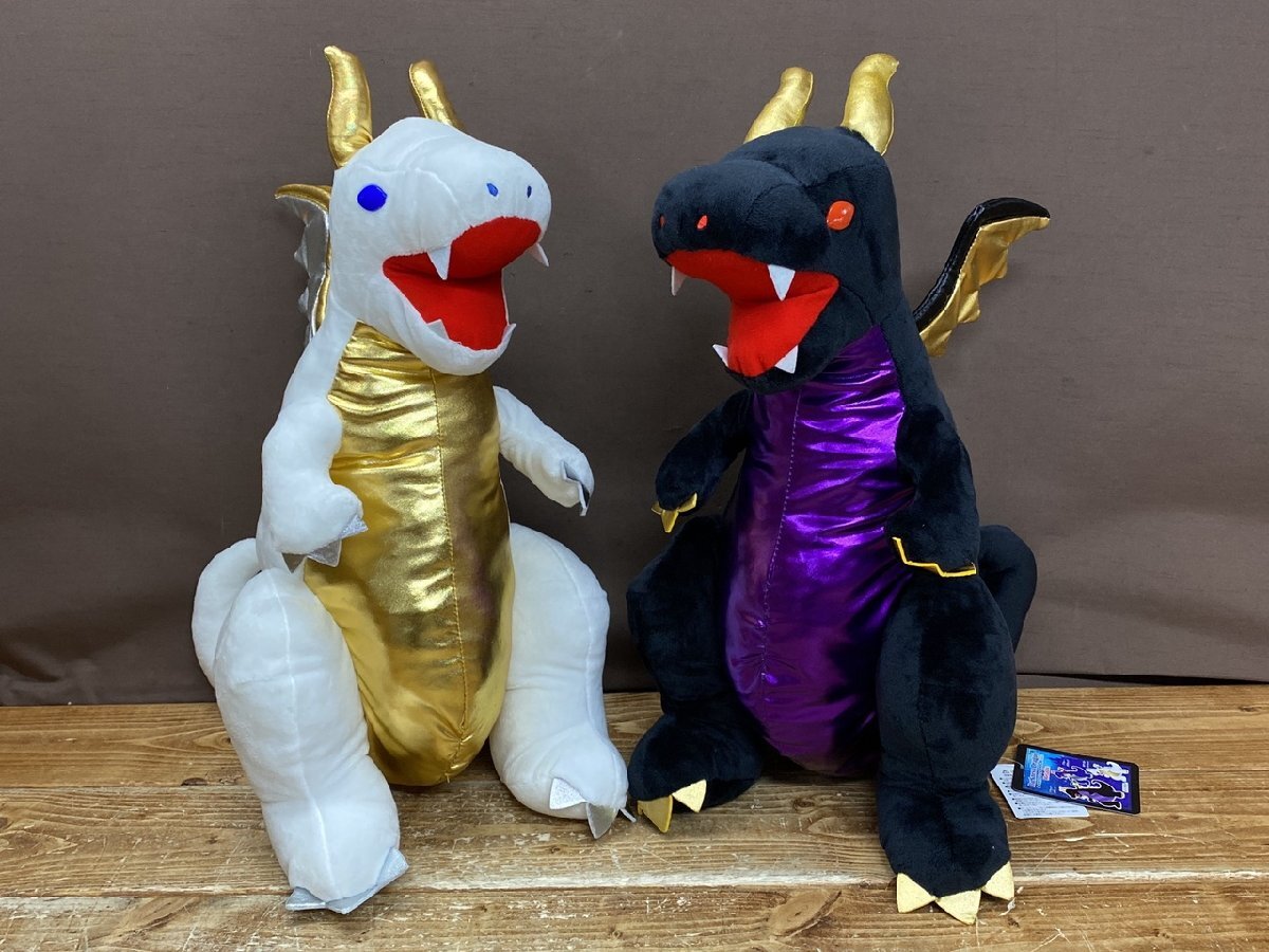 > 【TP-2839】タグ付き ダークネスドラゴン メタリック BIG ぬいぐるみ 特大 ホワイト 白 ブラック 黒 全長約55cm 2点セット【千円市場】