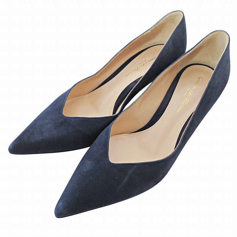 - ジャンヴィトロッシ Gianvito Rossi スウェード パンプス ポインテッドトゥ ピンヒール 35 22cm ネイビー 紺 0725 IBO75 レディース
