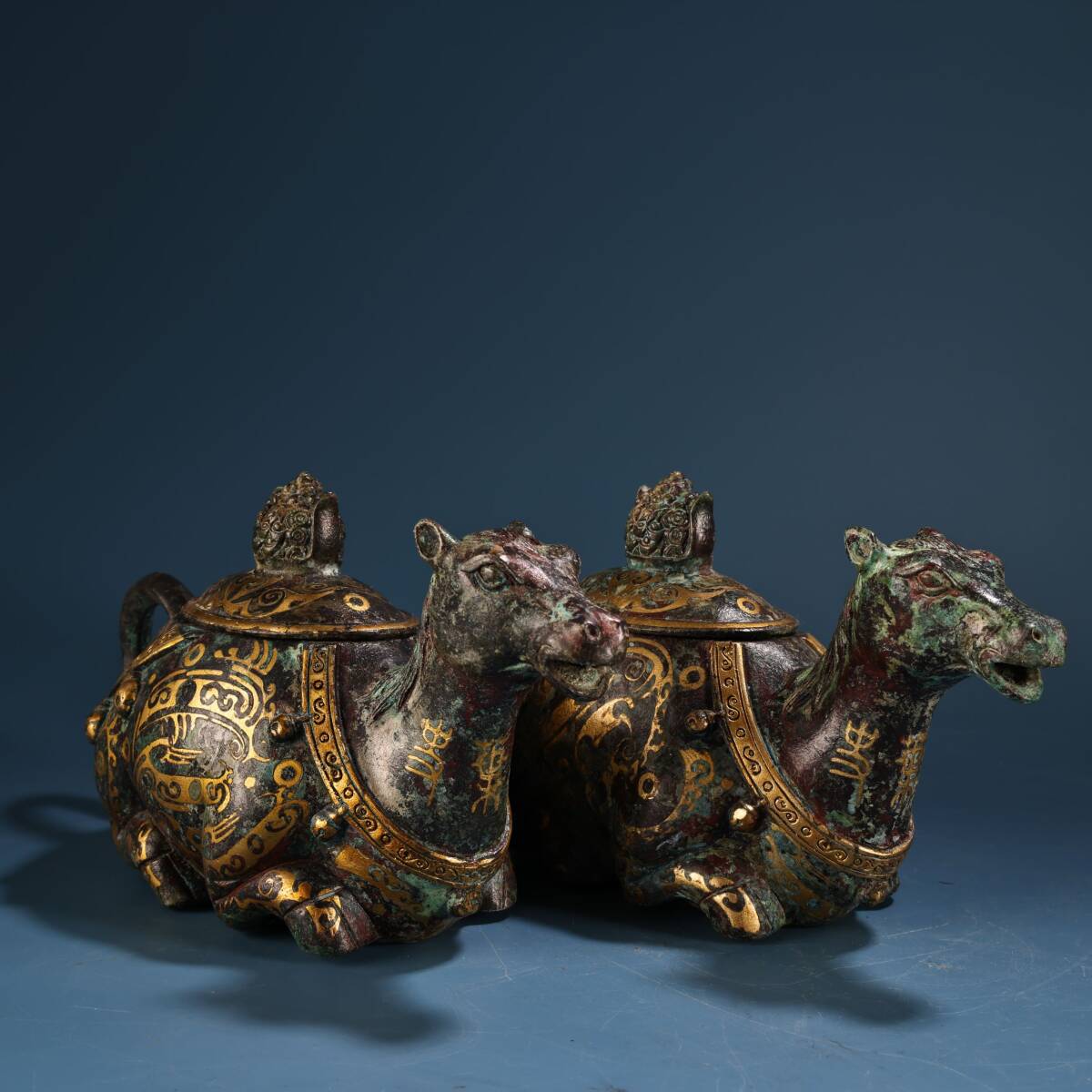- 漢時代 古銅錯金 青銅器 青銅錯金 小馬壺 壺 一対 擺件 置物 時代物 古董品 骨董 旧家蔵出し 唐物 中国古玩 古美術品 ヤフオク