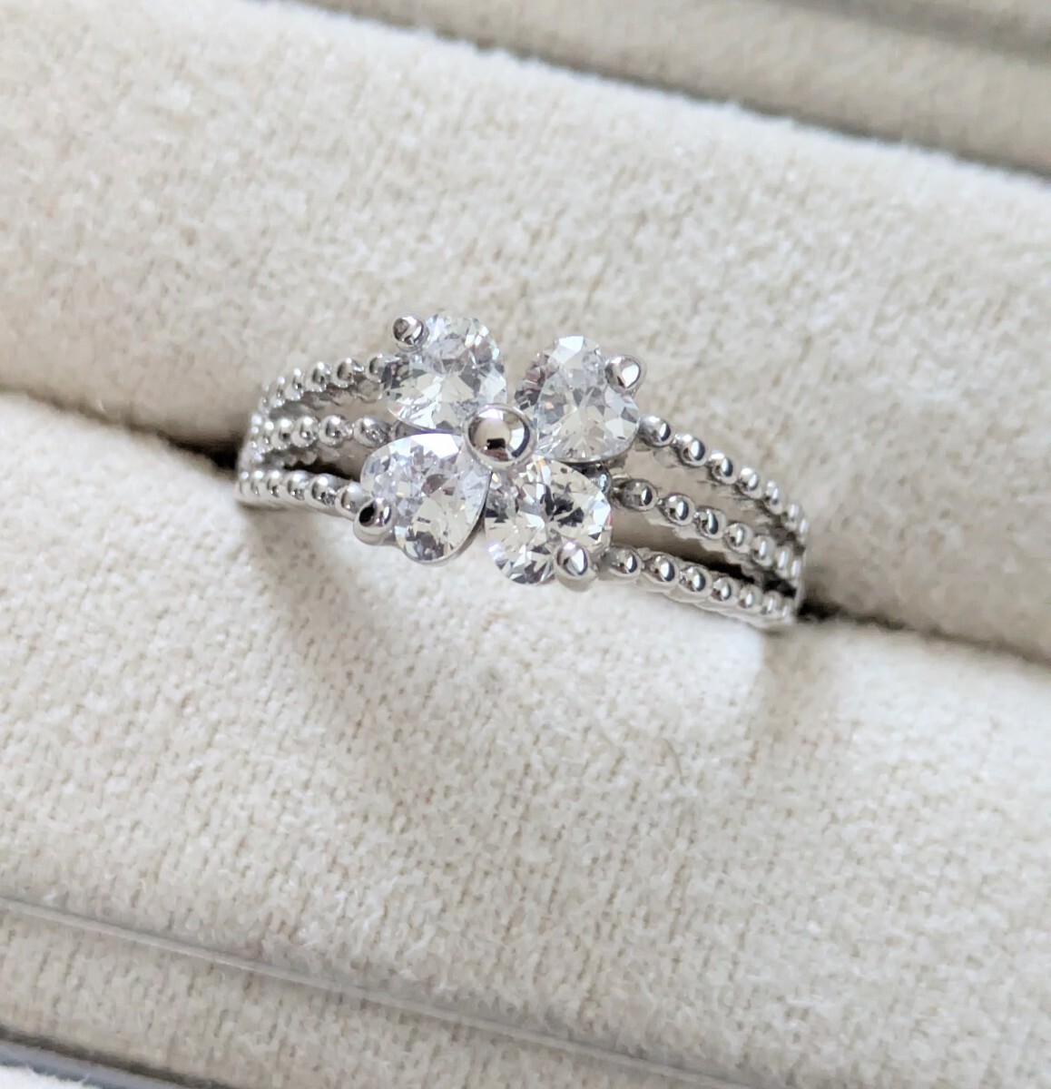 - クローバー リング 人工ダイヤモンド 14号 プラチナ 指輪 リング プレゼント レディースアクセサリー