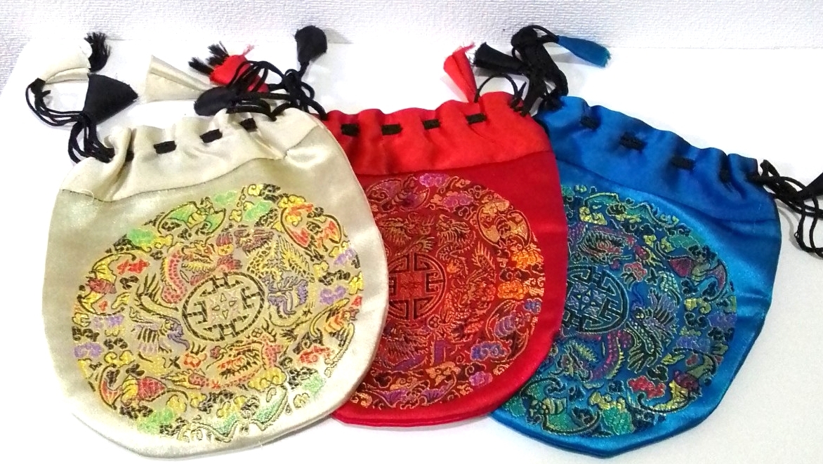 - 中華紋ミニ巾着袋S 三色セット チャイナサテン ギフトラッピング