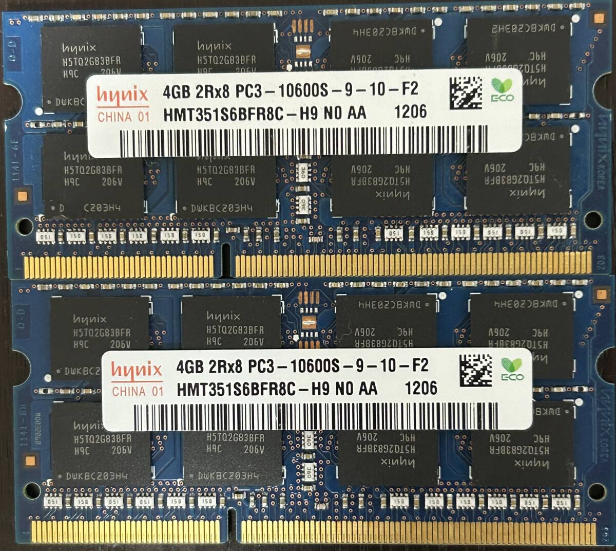 > 即決 動作確認済み hynix ハイニックス SO-DIMM 204pin DDR3 PC3-10600S 4GB×2枚 ノートパソコン用 714