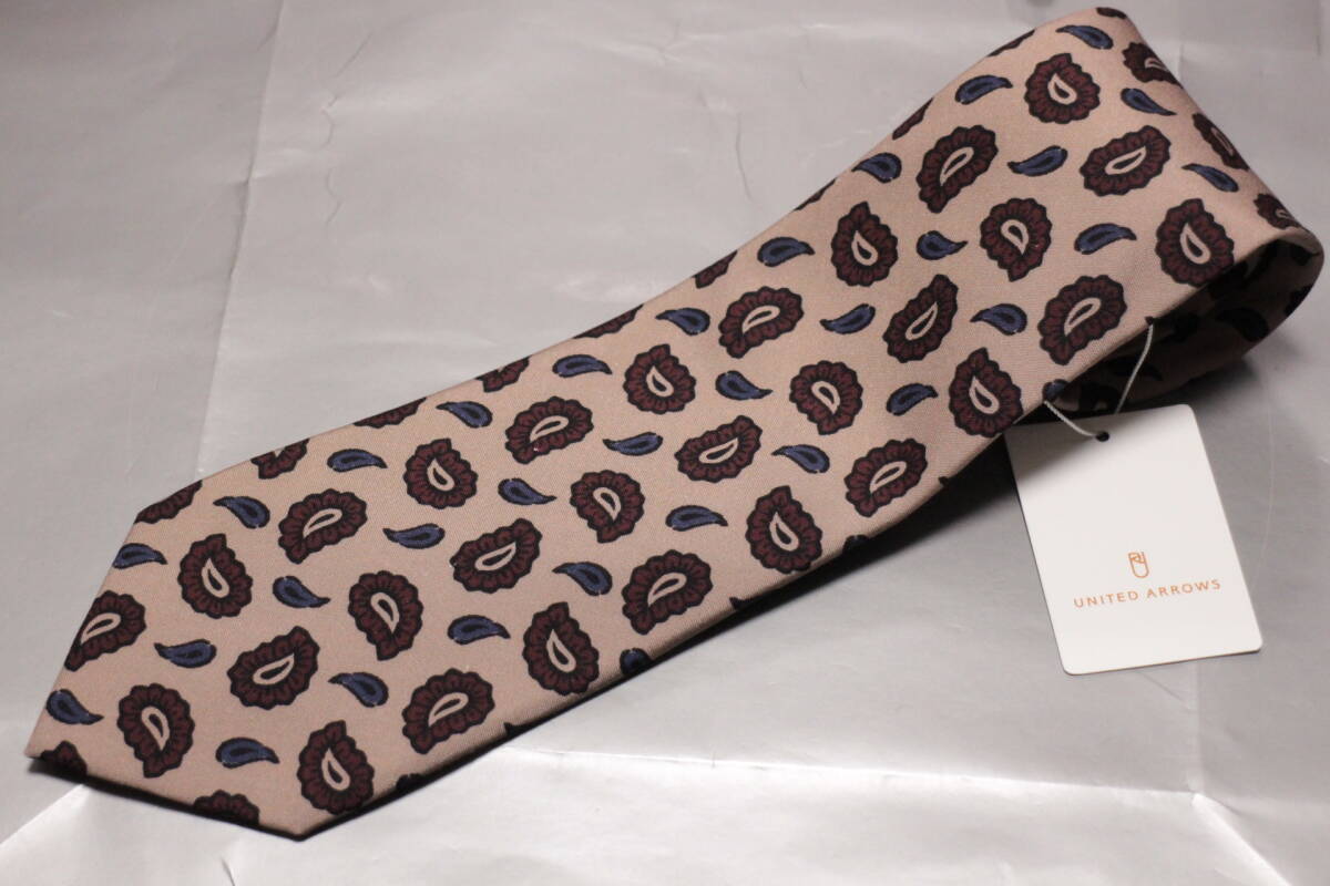 > ユナイテッドアローズ*フェルモフォサッティ新品ネクタイ華麗ネオトラッドグレージュ*ブルー*ブラウン小紋ヴィンテージ調ハンドメイド