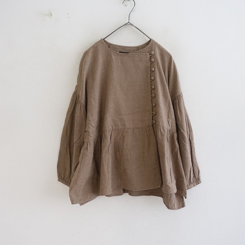 - TANDEY オオカミとフクロウ *起毛コットンぺプラムブラウス*長袖シャツ綿トップス茶ブラウンノーカラー(1-2507-50)【13G52】