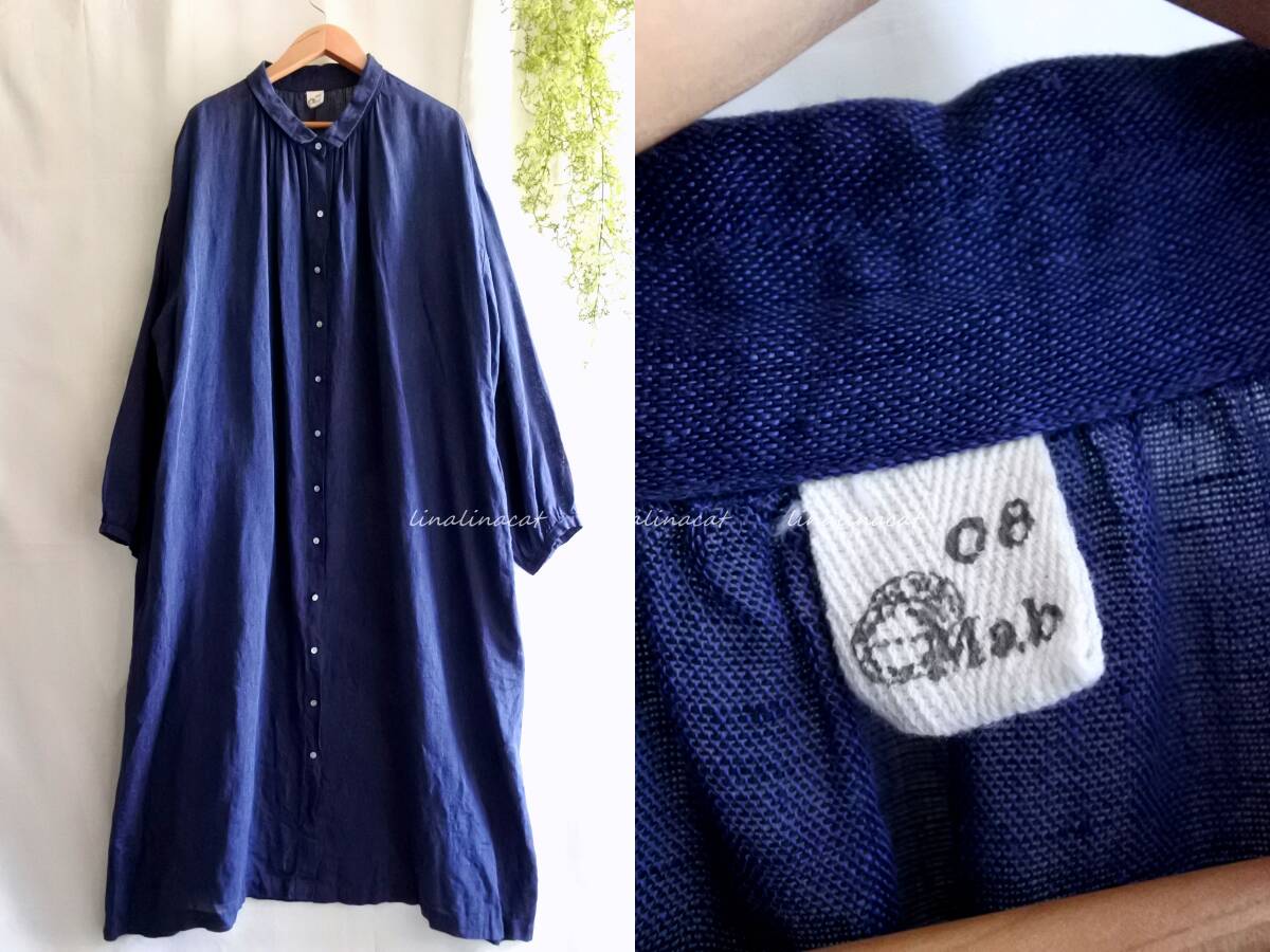 - 美品です 08mub ゼロハチマブ* リネン シャツ ワンピース インディゴブルー 軽やか ゆったり 羽織としても
