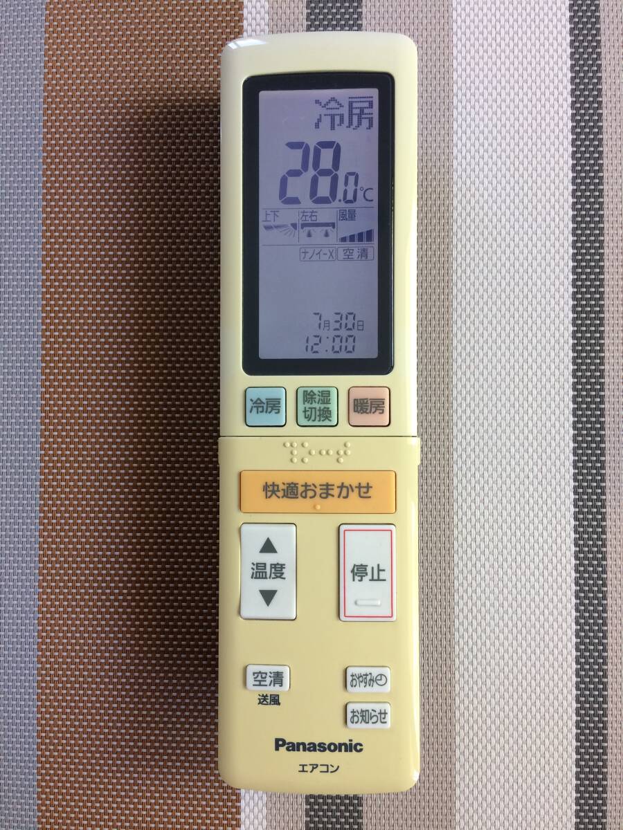 - 黄ばみあり★送料無料★Panasonic★パナソニック★純正★エアコン用リモコン★ACXA75C07820★中古★動作品★返金保証あり★