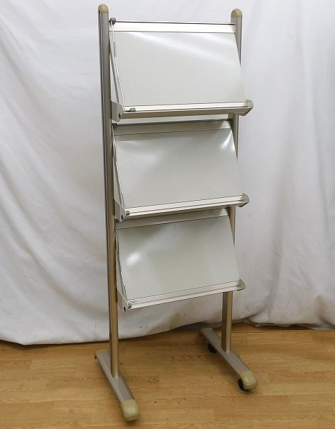 > T115Tちょる☆【オフィス家具】LION ライオン マガジンラック 3段 キャスター付 幅55×奥行46×高さ145cm パンフレットスタンド 店舗用品