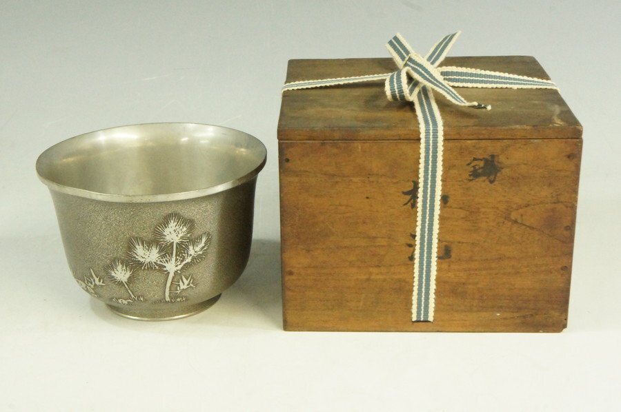 江戸時代創業で、「錫半」のブランドで知られた中村半兵衛作・純錫建水です。