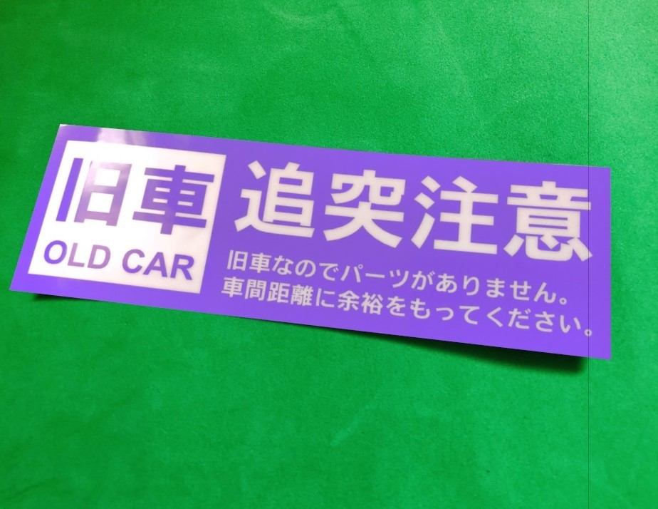 - a97.【旧車 追突注意】ステッカー むらさき色