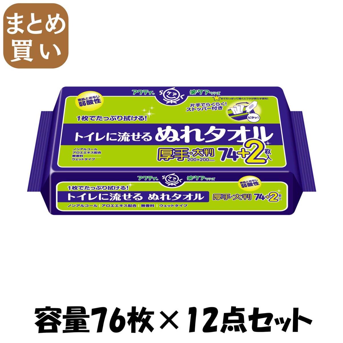 - 【まとめ買い】アクティ トイレに流せる ぬれタオル 76枚 容量76枚×12点セット 日本製紙クレシア おしりふき