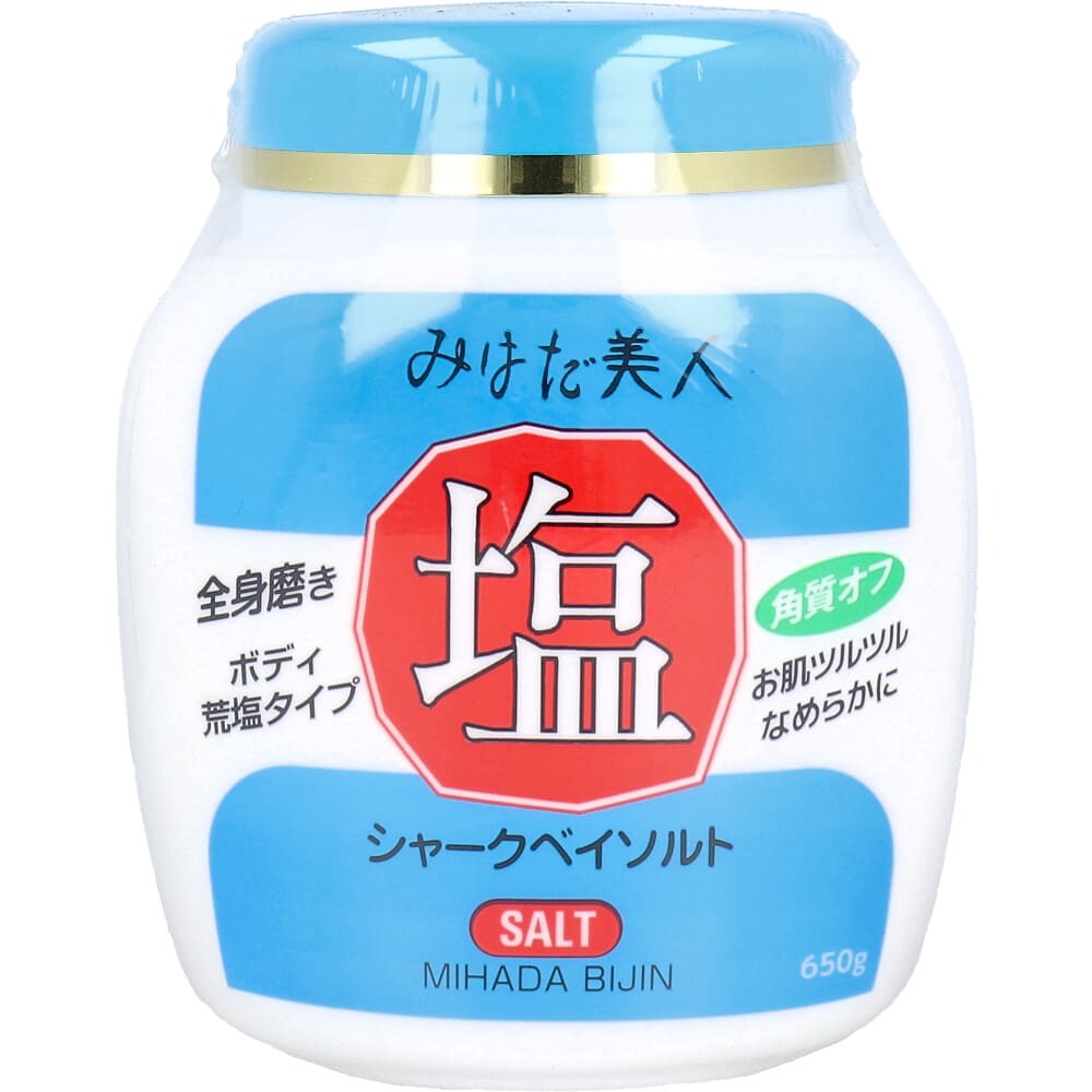 ▼▼▼▼▼▼注意事項▼▼▼▼▼▼・送料込み(送料700円が商品価格に含まれています) 一部地域では追加送料あり。・お取り寄せ商品です。弊社にて手配後、メーカー・卸業者からの直送になります。・まれにメーカー欠品、出荷遅延等が発生致します。問題発生時は別途メールにてご連絡致します。・配送方法の指定、日時指定、置き配、ギフト対応、他商品との同梱配送などは対応できません。・まとめ買いや複数購入の場合は通常より発送に時間が掛かる場合がございます・複数個口の場合、2階以上への搬入ができない場合があります。(その場合は1階での受け渡しとなります)・大型連休、お盆、年末年始などは発送をお休みさせていただく場合がございます・メーカー都合により、パッケージは予告なく変更される場合がございます・梱包用のダンボールはリサイクル品を使用させていただきます。・注文に関するご連絡(注文確定通知・発送通知など)はメールでご案内させていただきます※商品ページの内容について、少しでもご不明な点などがございましたら購入前に一度ご連絡ください▲▲▲▲▲▲注意事項▲▲▲▲▲▲〇商品説明荒塩で古い角質・ザラつきをOFF。全身つるすべ肌に。●世界遺産の海から生まれたシャークベイソルトをベースに、ローヤルゼリーエキスならびに3種類の保湿成分をバランスよく配合した、マッサージ塩です。●塩スクラブ効果により、古い角質をおとし、お肌ツルツルなめらかに。●4種類のエキス配合(保湿成分)。(ローヤルゼリーエキス・ヒバマタエキス・レモン果実エキス・モモ葉エキス)●コメヌカ油がお肌をなめらかにし、しっとり保ちます。●6つのフリー。(鉱物油フリー・界面活性剤フリー・アルコールフリー・パラベンフリー・香料フリー・着色料フリー)●無香料。【化粧品】販売名:みはだ美人 S【全成分表示】塩化Na、ローヤルゼリーエキス、ヒバマタエキス、レモン果実エキス、モモ葉エキス、コメヌカ油、BG、水【ご使用方法】・入浴時に、お肌を十分にぬらしてからご使用ください。・手のひらに適量をとり、ウエスト、ヒップ、太もも、足首、ひざ、かかとなどを軽く、やさしくマッサージし、2〜3分放置してください。・その後、水、ぬるま湯、あるいはお湯で十分に洗い流してください。・ご使用後、スプーンは容器の外に出しておいてください。【ご注意】・強くこすりすぎないこと。・お肌に異常が生じていないかよく注意して使用してください。・使用中、赤味、はれ、かゆみ、刺激、色抜け(白斑等)や黒ずみ等の異常があらわれた場合は、使用を中止し、皮膚科専門医等にご相談されることをおすすめします。・浴槽内では使用しないこと。・容器には、水が入らないように注意すること。・本品は、吸湿性がありますので固くなることがありますが、品質には全く影響ありません。・本品を、飲食用には使用しないこと。・乳幼児の手の届かないところに保管すること。〇商品仕様個装サイズ:107X128X80mm個装重量:約740g内容量:650g製造国:日本【発売元:株式会社黒ばら本舗】(出典:黒ばら本舗)
