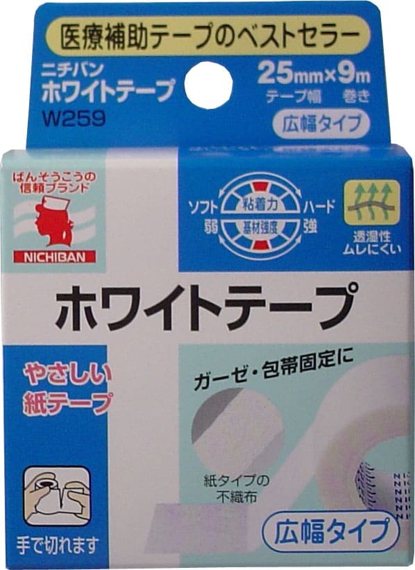 ▼▼▼▼▼▼注意事項▼▼▼▼▼▼・送料込み(送料700円が商品価格に含まれています) 一部地域では追加送料あり。・お取り寄せ商品です。弊社にて手配後、メーカー・卸業者からの直送になります。・まれにメーカー欠品、出荷遅延等が発生致します。問題発生時は別途メールにてご連絡致します。・配送方法の指定、日時指定、置き配、ギフト対応、他商品との同梱配送などは対応できません。・まとめ買いや複数購入の場合は通常より発送に時間が掛かる場合がございます・複数個口の場合、2階以上への搬入ができない場合があります。(その場合は1階での受け渡しとなります)・大型連休、お盆、年末年始などは発送をお休みさせていただく場合がございます・メーカー都合により、パッケージは予告なく変更される場合がございます・梱包用のダンボールはリサイクル品を使用させていただきます。・注文に関するご連絡(注文確定通知・発送通知など)はメールでご案内させていただきます※商品ページの内容について、少しでもご不明な点などがございましたら購入前に一度ご連絡ください▲▲▲▲▲▲注意事項▲▲▲▲▲▲〇商品説明医療補助テープのスタンダード!・ガーゼや包帯止めに。・汎用性があり使いやすい。・高透湿性でムレが少ない。しなやかな紙タイプの不織布(ふしょくふ)にアクリル系粘着剤を塗布したテープです。病院でもガーゼ固定などに広く使われています。【用途】・ガーゼや包帯の固定に【使用上の注意】・皮ふを清潔にし、よく乾かしてからご使用ください。・キズぐちには直接貼らないでください。・皮ふ刺激の原因となりますので、引っ張らずに、貼ってください。・本品の使用により発疹、発赤、かゆみ等が生じた場合は使用を中止し、医師又は薬剤師に相談してください。・皮ふを傷めることがありますので、はがす時は、体毛の流れに沿ってゆっくりはがしてください。【保管上の注意】・小児の手のとどかない所に保管してください。・直射日光をさけ、なるべく湿気の少ない涼しい所に保管してください。〇商品仕様個装サイズ:57/28/80個装重量:23.5g内容量:25mm×9m×1個製造国:日本【発売元:ニチバン株式会社】(出典:ニチバン)