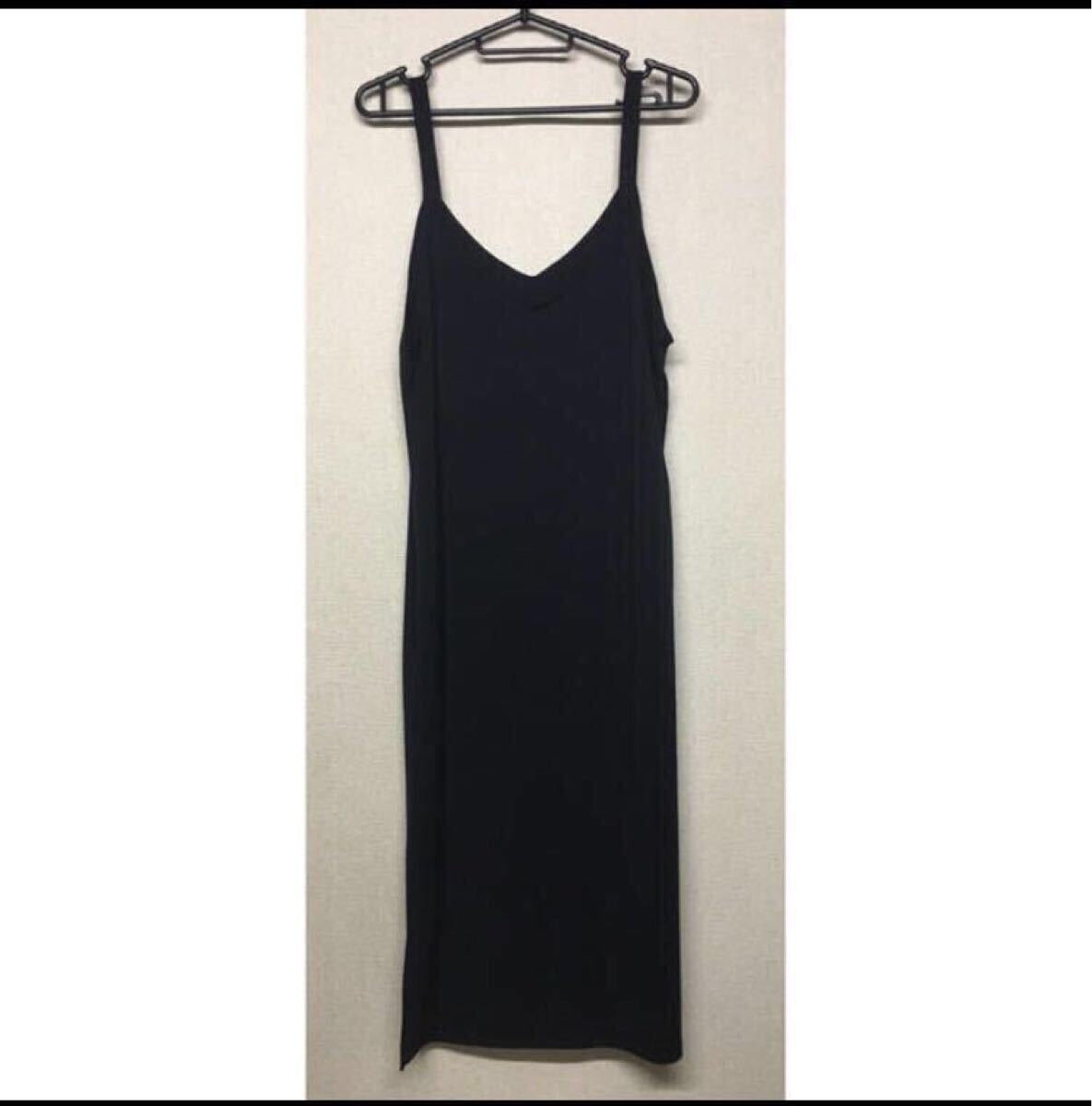 - マキシ丈 ロングナローキャミワンピ 黒M