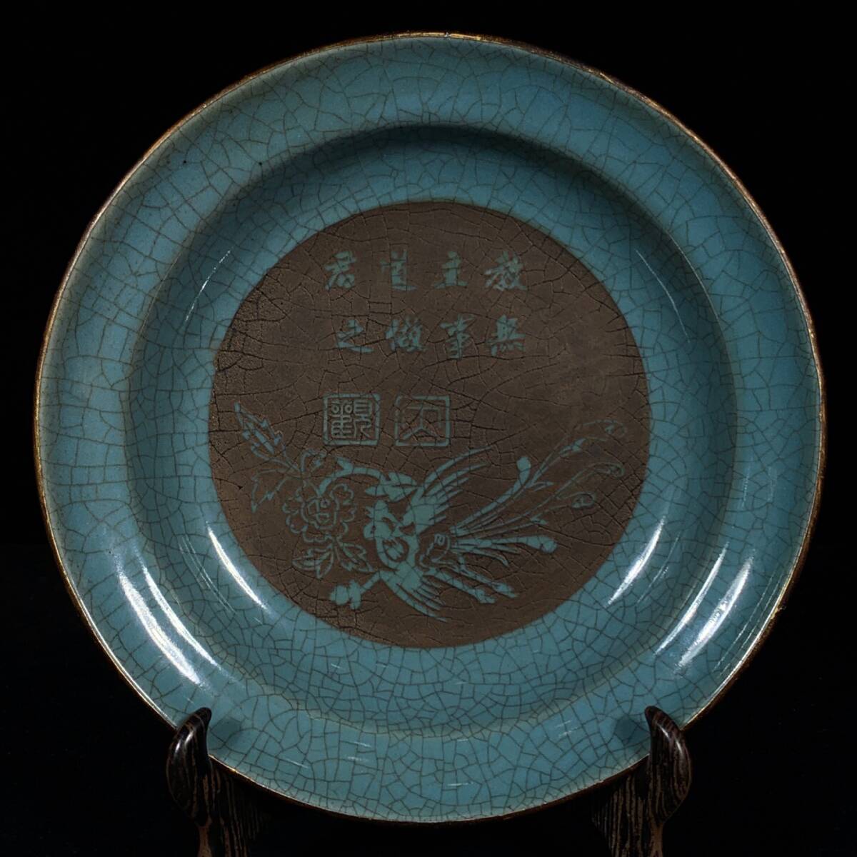 - 『館蔵珍品 宋 古陶瓷品 汝窯 包口 銘文花鳥紋 折沿洗 陶藝』稀少珍蔵品 古賞物 貴重物品 収蔵品 中国古美術 時代物 古董品