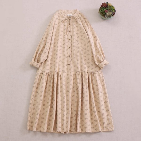 - lb 0708 ワンピースフリーサイズ チュニック トップス ナチュラル 綿100% 大人可愛 プリント花柄 裾広がる3