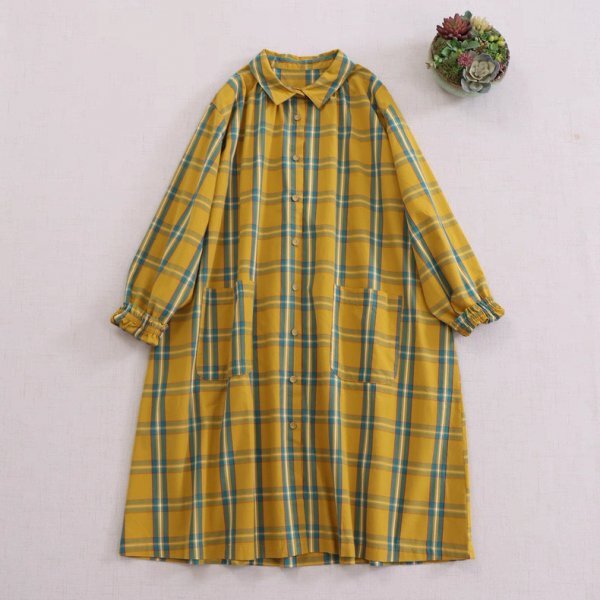 > lb 0708 カーディガン シャツワンピース Aライン フリーサイズ チュニック トップス ナチュラル 綿100% 大人可愛 チェック柄2
