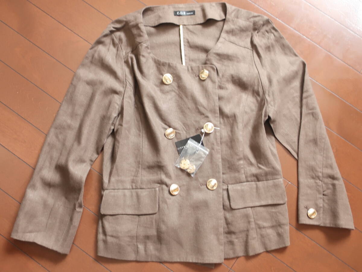 - C.D.S BASIC★濃ブラウン ノーカラーサマージャケット【LL】未使用 麻混