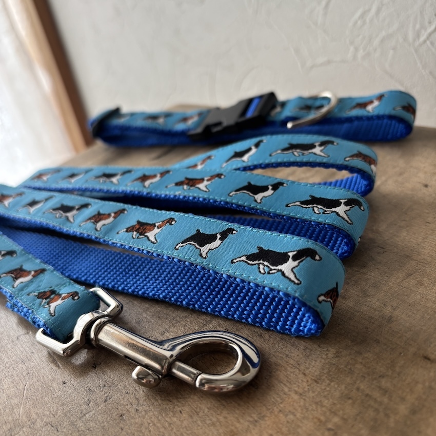 - イングリッシュスプリンガースパニエル・ブルー 首輪&リードのセット アメリカ製