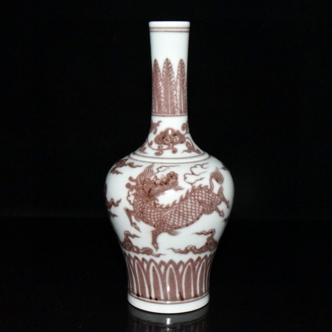 - 蔵友旧蔵出 明 宣德年製款 釉裡紅 麒麟紋 搖鈴瓶 稀少珍品 貴重品 古陶瓷品 置物 古賞物 中国古玩 中国古美術品