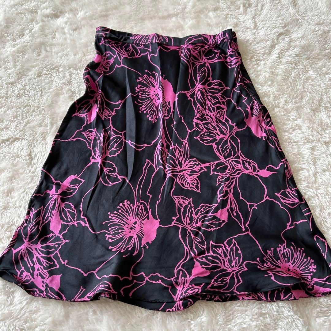 - アンナモリナーリ ブルマリン ブルーガール シルク100 絹 フレアスカート 花柄 ブラック Sサイズ