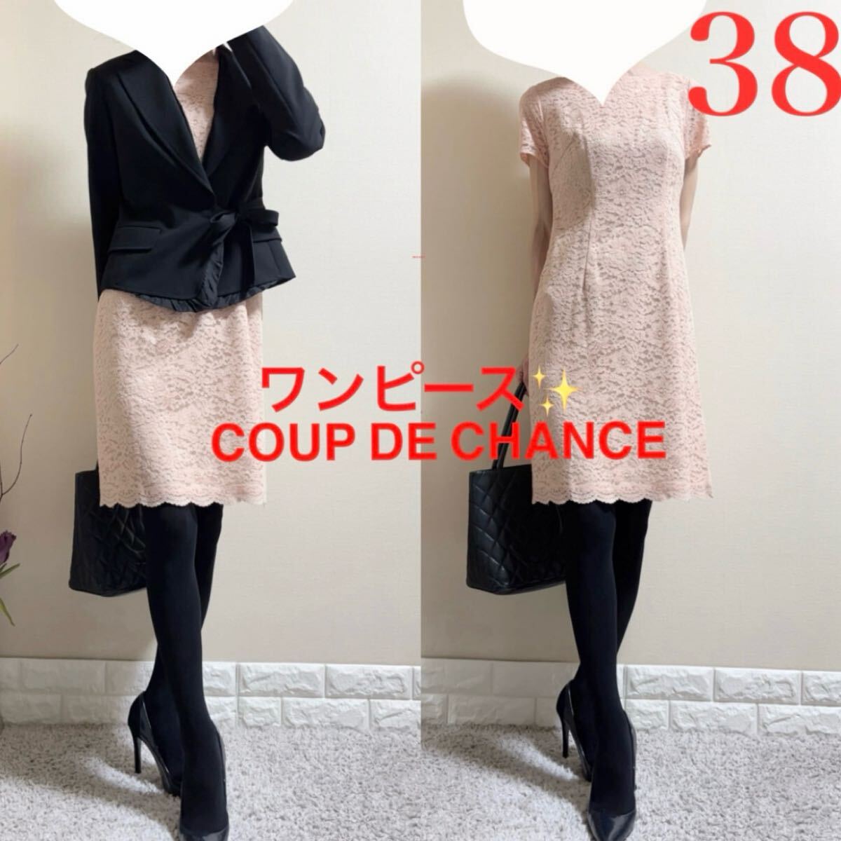 - 美品!COUP DE CHANCE クードシャンス 上質 総レース 半袖 ワンピース 38 M 通年 ピンク系 オケージョン パーティ 結婚式