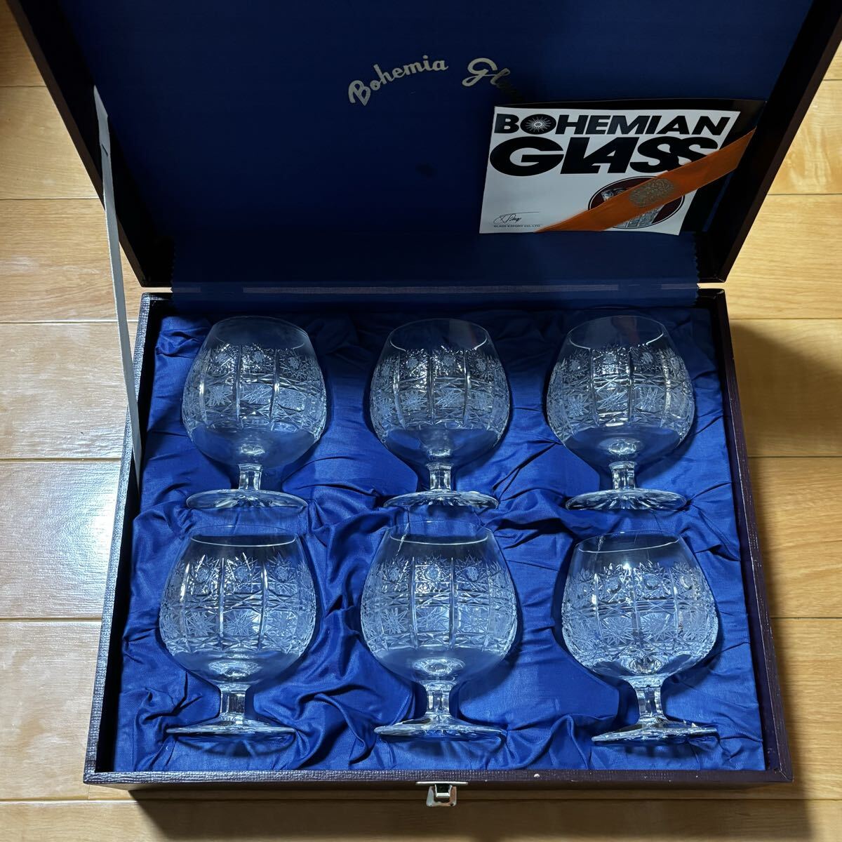 - 未使用 美品 ボヘミアンガラス ボヘミア ブランデーグラス 500pk 6客 未使用 クリスタル 化粧箱入り コレクション インテリア 送料無料