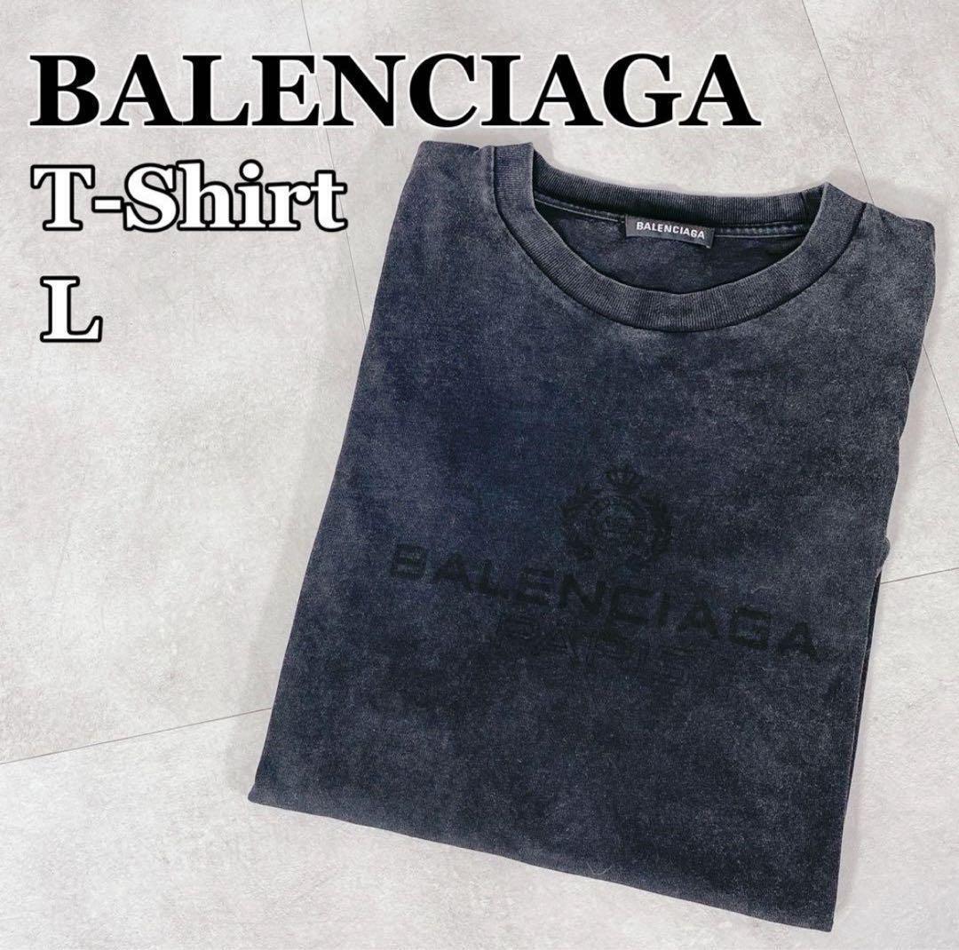 - Y409 BALENCIAGA バレンシアガ ロゴ 半袖Tシャツ L メンズ 黒
