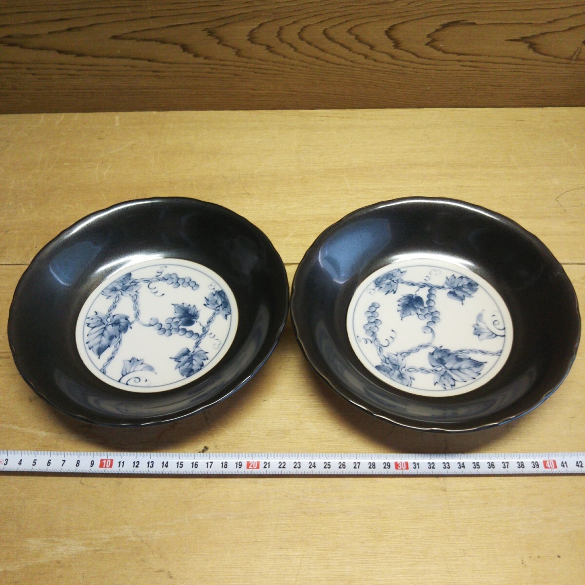 - 25080305 橘吉 葡萄柄 ペア中皿 たち吉 盛り皿 ぶどう柄 コレクション