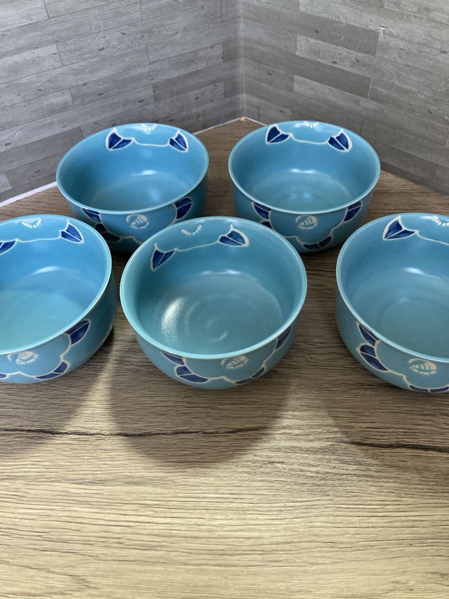 - 和食器 深皿 小鉢 食器 皿 染付 陶器 水色 花柄 可愛い ポップ レトロ