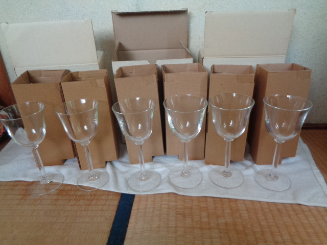 - ワイングラス 6個/メーカー等不詳/箱入2本組×3箱=6本/箱入未使用美品-長期保管品