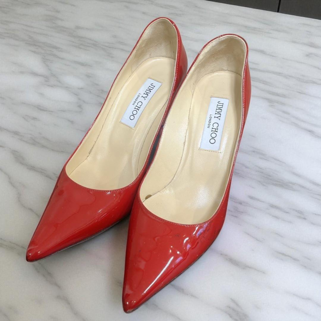 - 美品 ジミーチュウ パテントレザー 赤パンプス 23.5cm