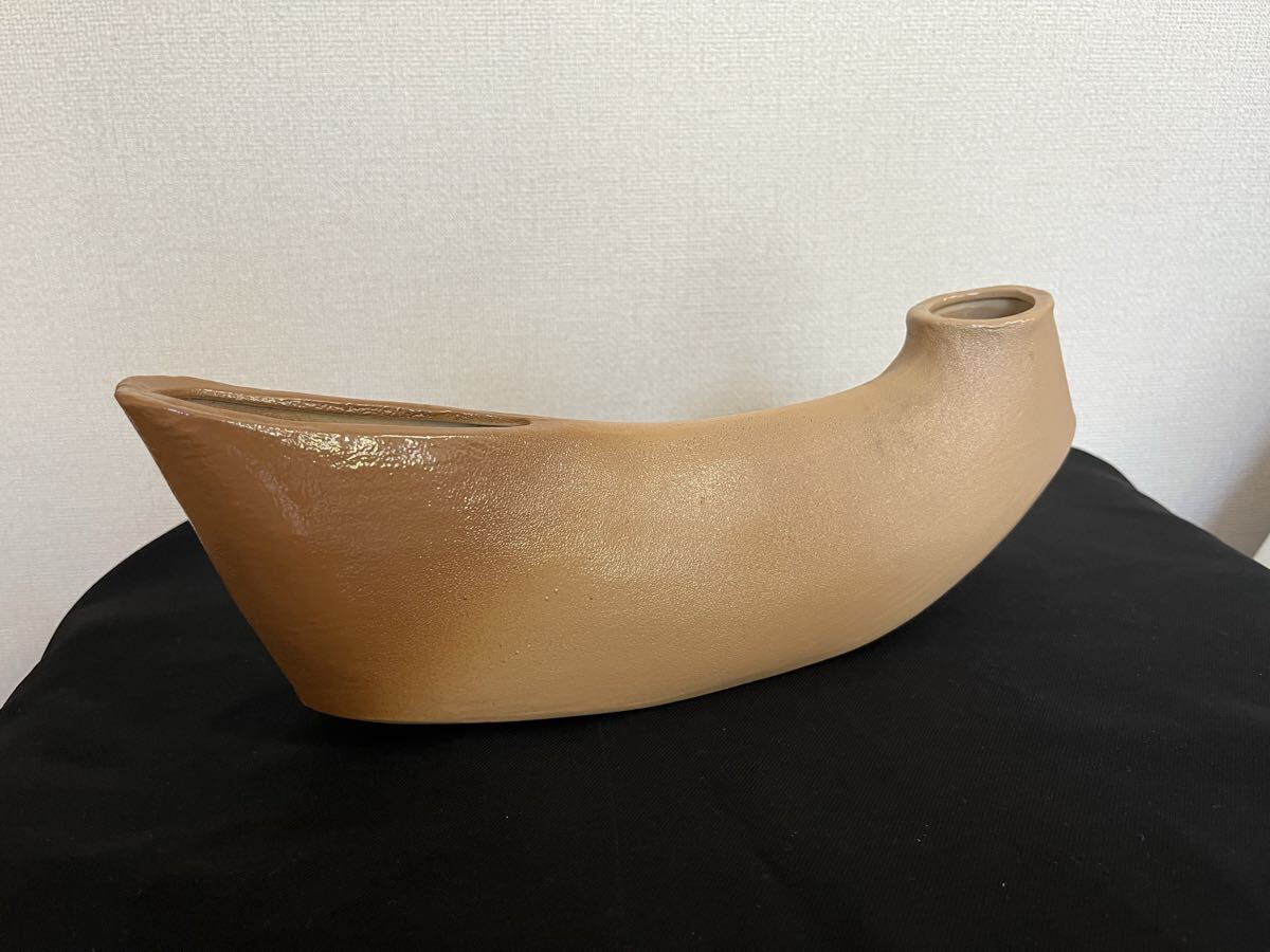 - 変形 陶器製 花器 水盤 管理A3385 フラワーベース 花瓶 華道 華展 花展 いけばな