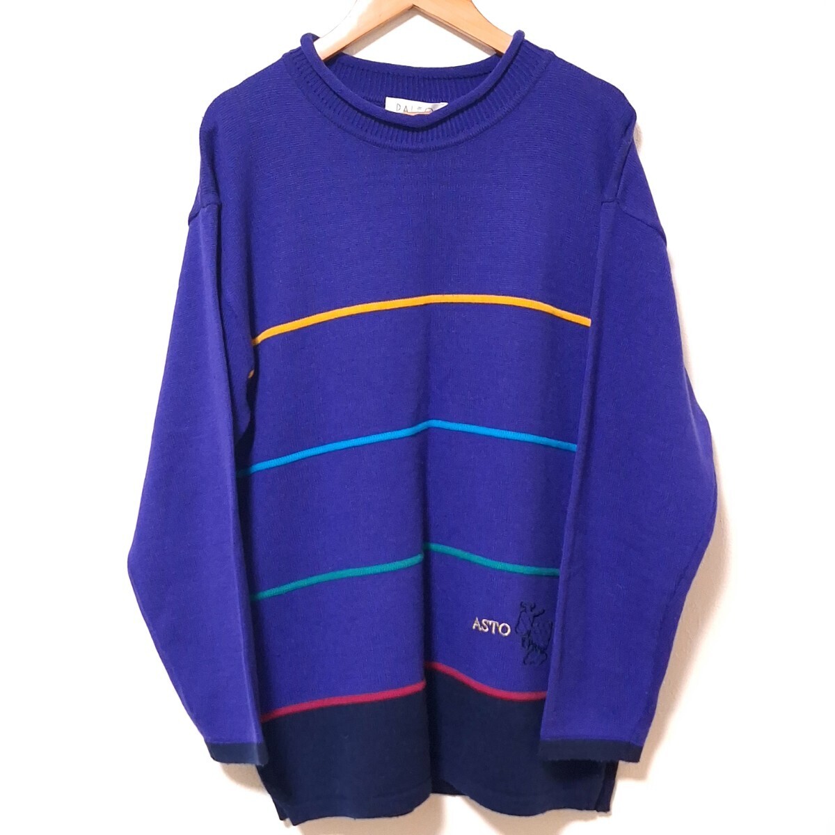 - 大きいサイズ◎オシャレなカラー!【PALEO】パレオ 長袖 ニット セーター ストライプ バイカラー 重ね着 パープル 紫 サイズLL /Y35596QQ