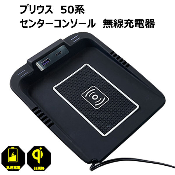 > トヨタ プリウス 50系 H27.12~ ワイヤレス充電器 無線充電 センターコンソール qi スマートフォン 充電器 QC3.0急速充電 iphone galaxy