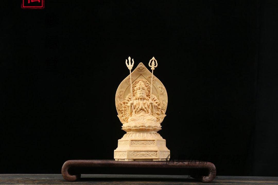 - 精密彫刻 木彫仏教 千手観音仏像 高さ15cm【送料無料】【仏具仏像専門店寶勝堂】