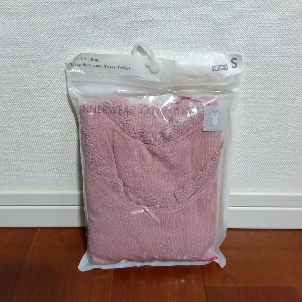 > ユニクロ UNIQLO レディース S インナーウエア コレクション UネックT 長袖 / ピンク系 ★希少 即決