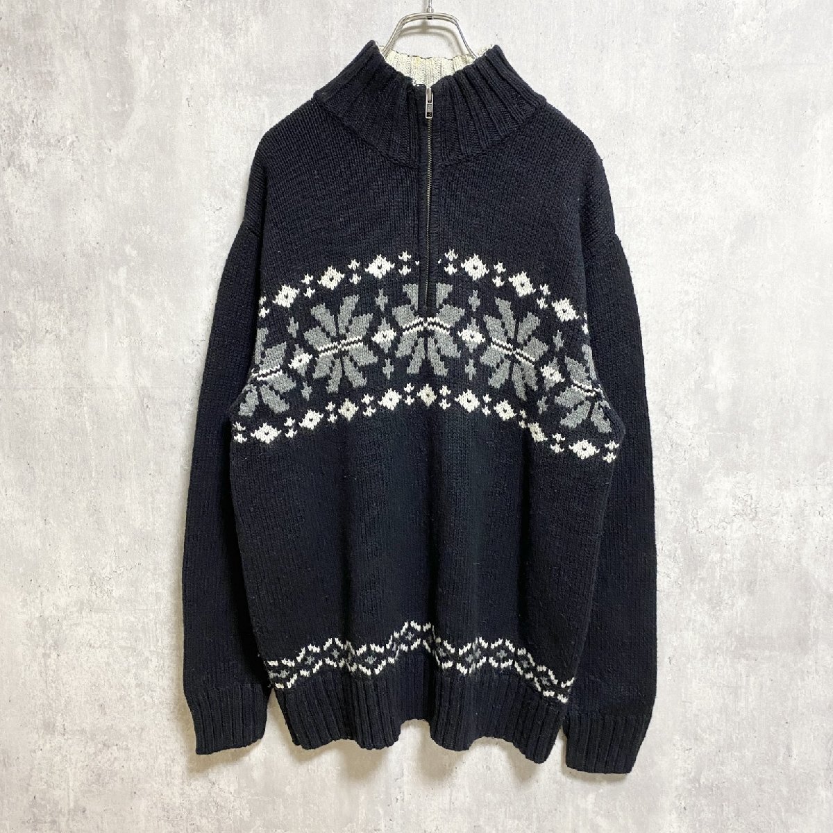 > 古着 used sonoma 長袖ハーフジップニット セーター ノルディック柄 ビックシルエット 黒 ハイネック XLサイズ