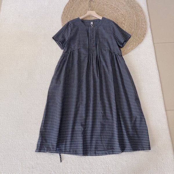 > lh 0708 ワンピース Aライン フリーサイズ チュニック ナチュラル 綿100% 大人可愛 チェック柄 サラサラ 半開け 黒灰色