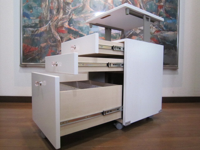- リモートワーク テレワーク ホワイト 脇机 袖机 サイドデスク 木製サイドテーブル キャビネット コイズミ 小泉 KOIZUMI ★491