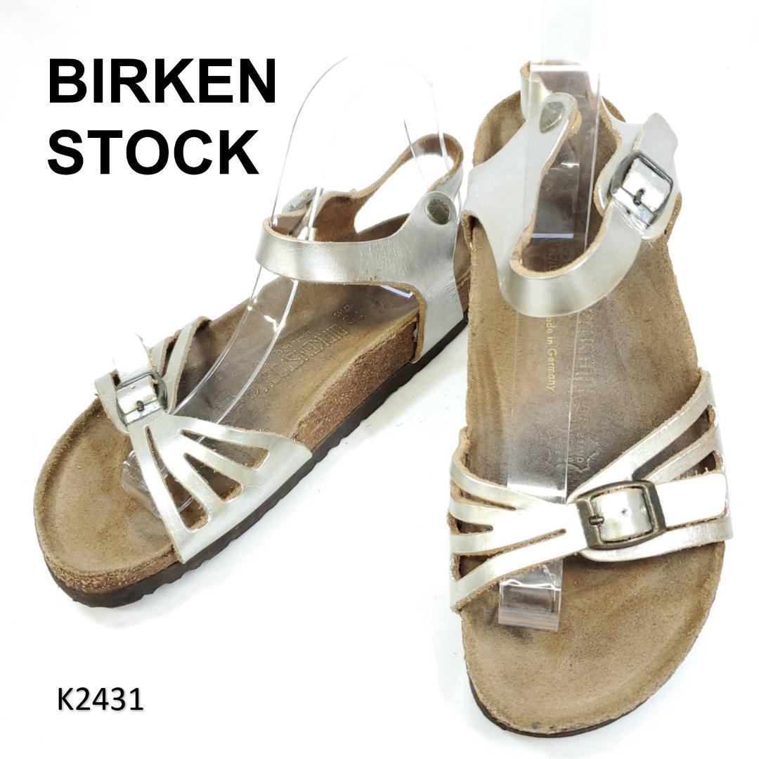 - ビルケンシュトック バリ レザー ストラップ シルバー EU38 サンダル