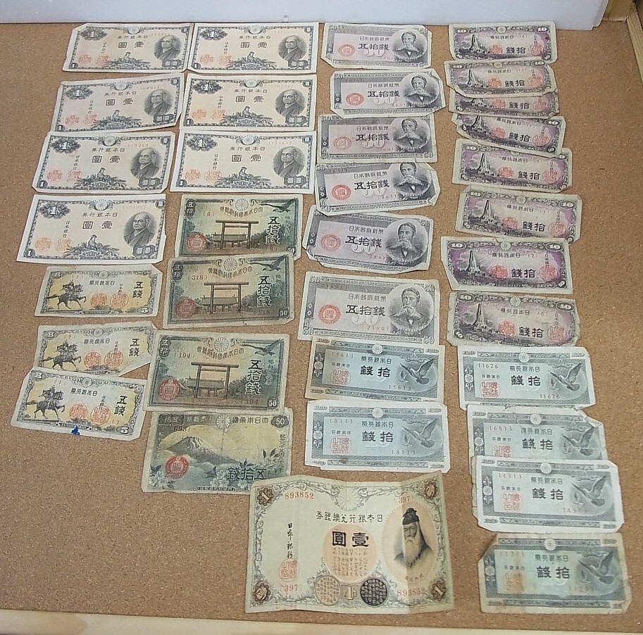 - 旧紙幣☆ 旧札 古札 日本銀行券 拾圓 拾銭 五拾銭 五銭 壱圓 傷みあり