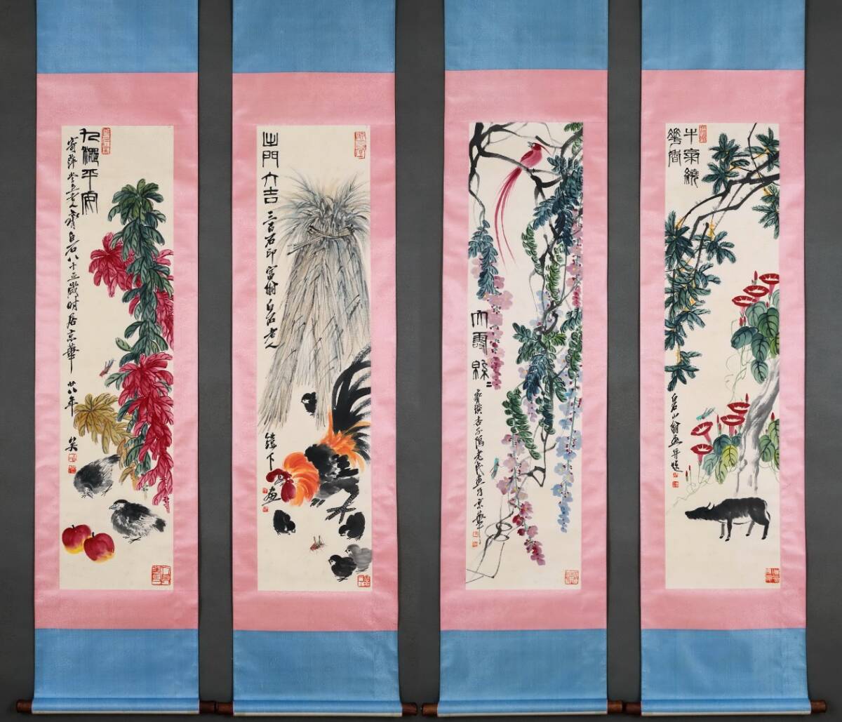 - 【博古斎】 中国書画 掛け軸 【斉白石&平安大吉図】紙本立軸 書道巻物 真筆逸品 肉筆保証 唐物 古画 LOT-N3988